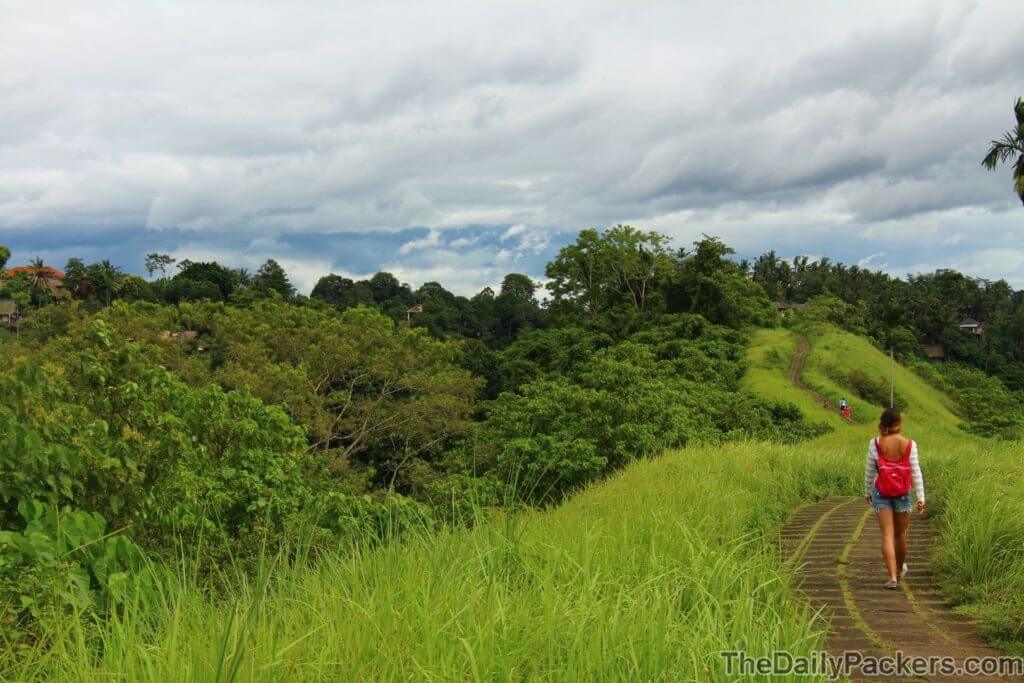 Le sentier commence juste derrière le Warwick Ibah Luxury Villas & Spa. Vous passerez devant un petit temple et suivrez un sentier qui vous mènera à une crête entourée de collines verdoyantes et de vallées de jungle. Les vues sont absolument époustouflantes, surtout au petit matin, lorsque l’air est frais et que la lumière adoucit le paysage.