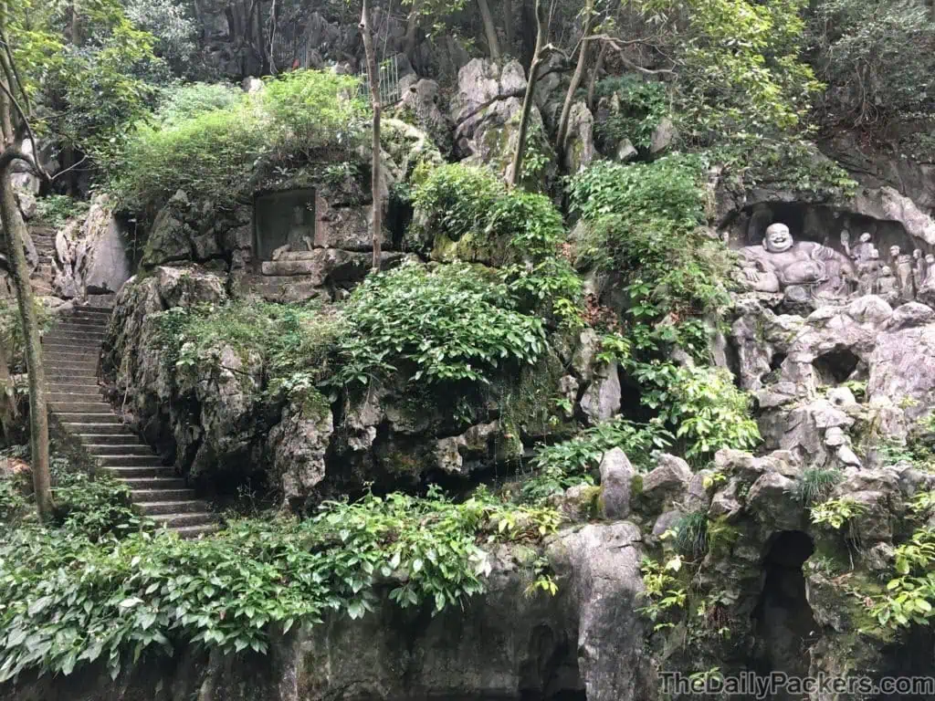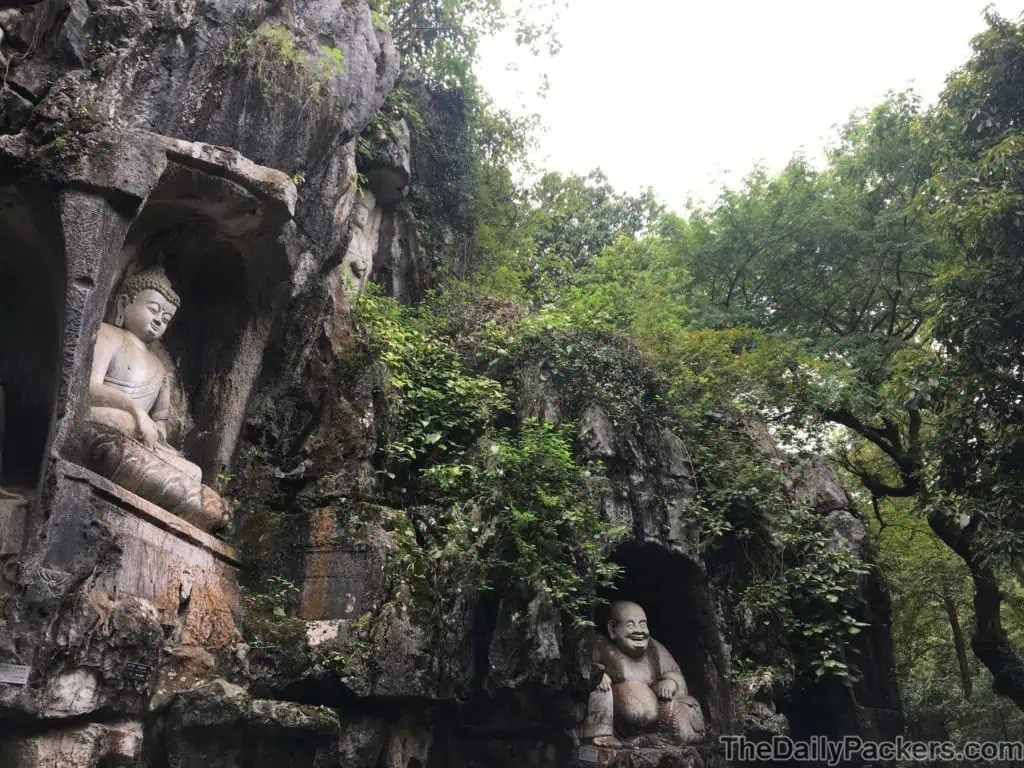 En explorant le vaste terrain, vous découvrirez de grandes salles, des cours remplies d’encens et d’imposantes statues de Bouddha. Mais ne vous arrêtez pas là : juste en face du temple se trouve Fei Lai Feng (Flying Peak), une colline calcaire spectaculaire recouverte de plus de 300 sculptures en pierre de bouddhas et de divinités, dont la plupart datent du 10e au 14e siècle. Ces sculptures, taillées directement dans la roche, comptent parmi les plus beaux exemples d’art bouddhiste en Chine.